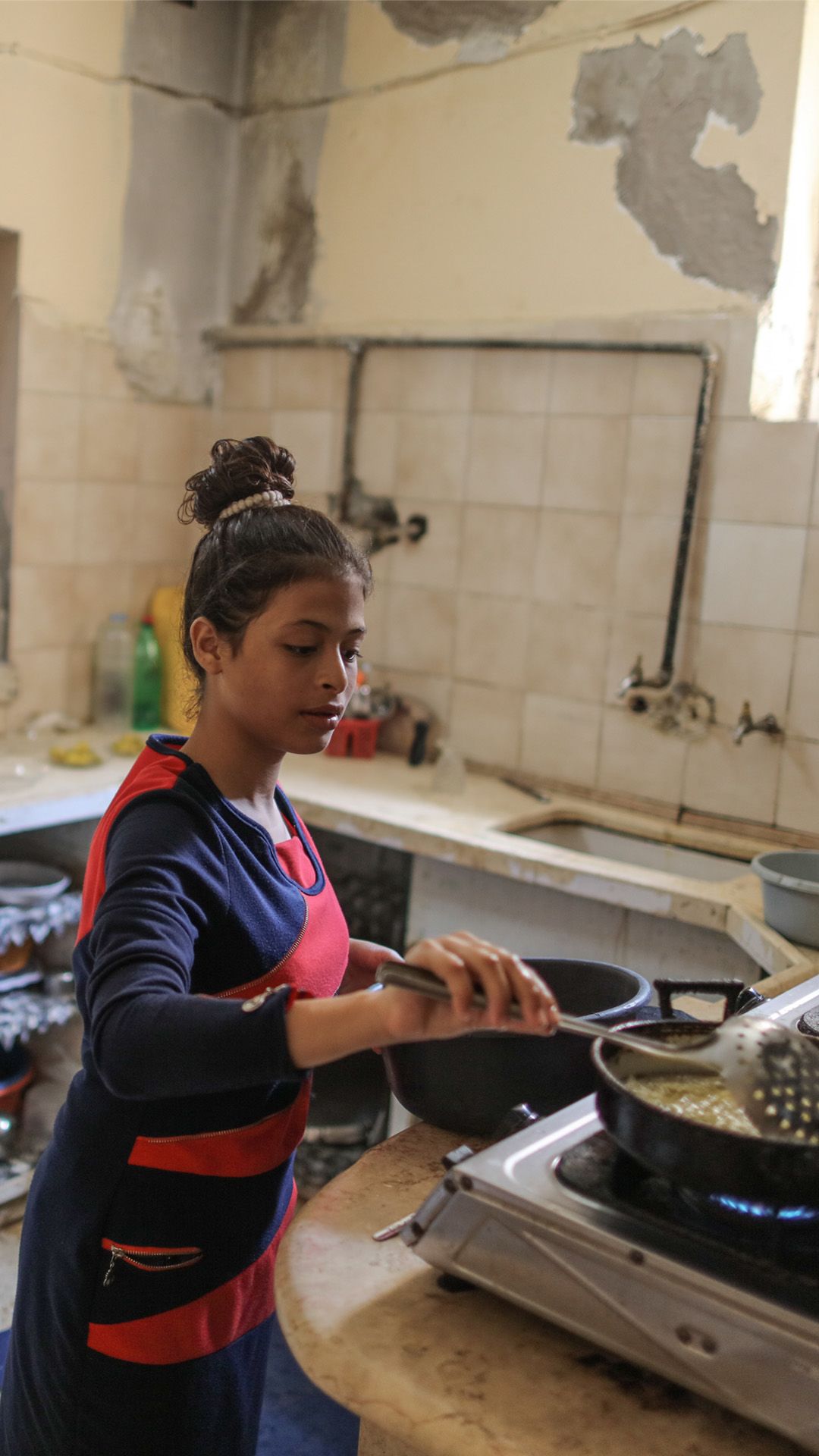 Omaia lives in the Al Sha’af neighbourhood with her grandfather, mother and father, three sisters and two younger brothers. Her father works as a stonemason.