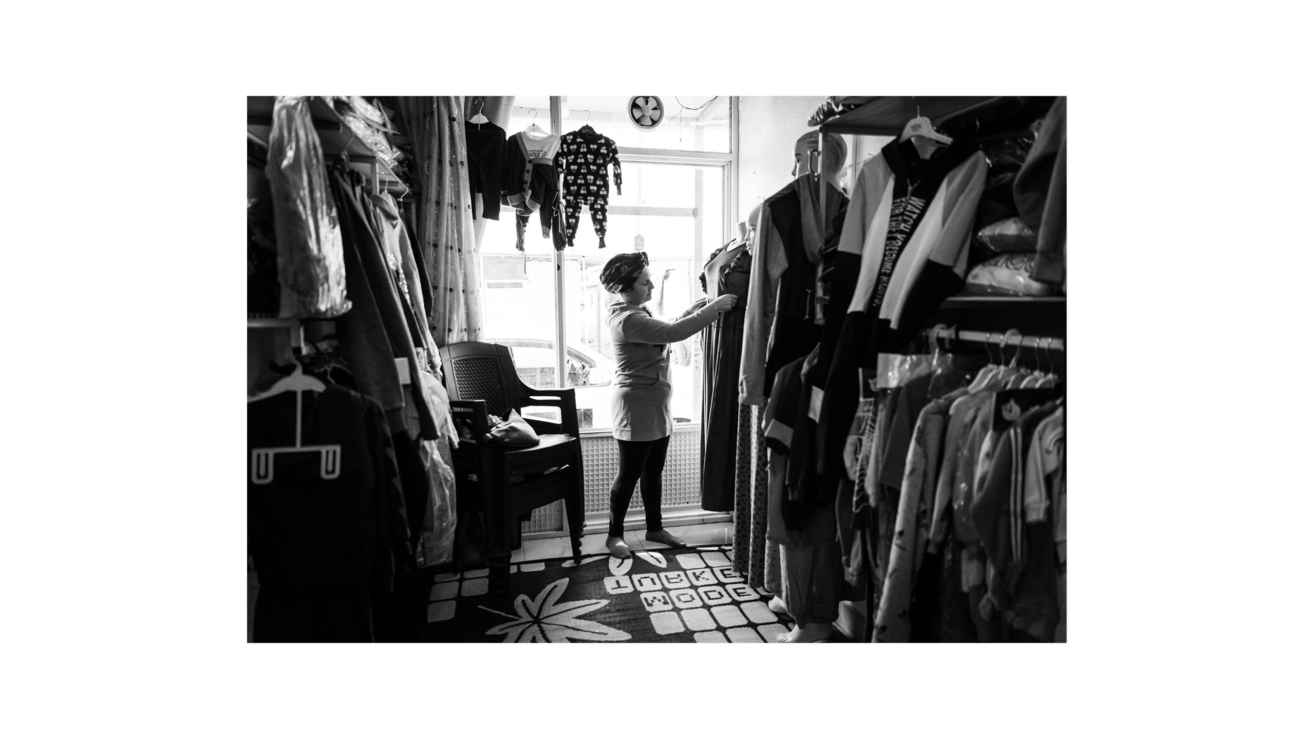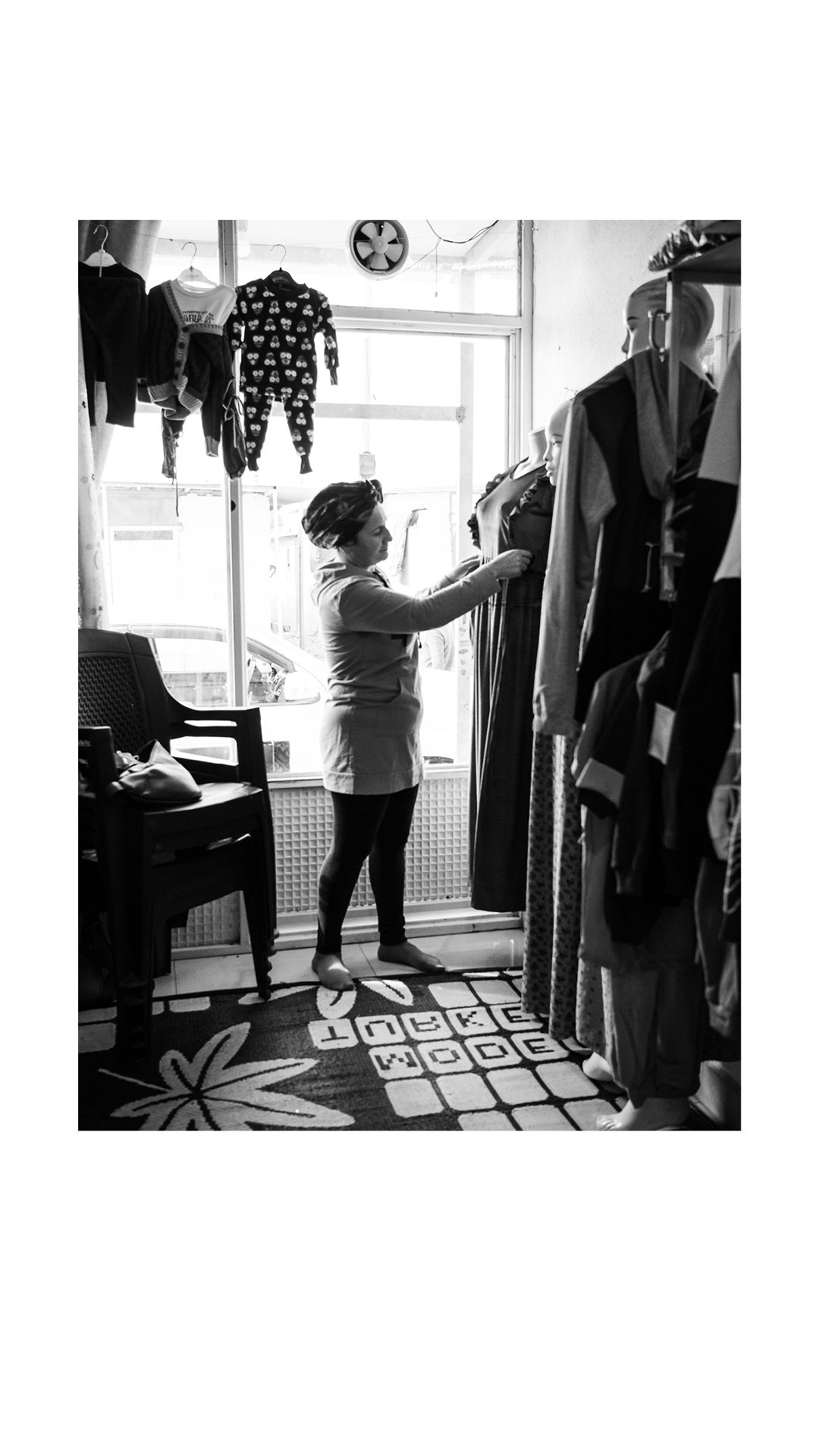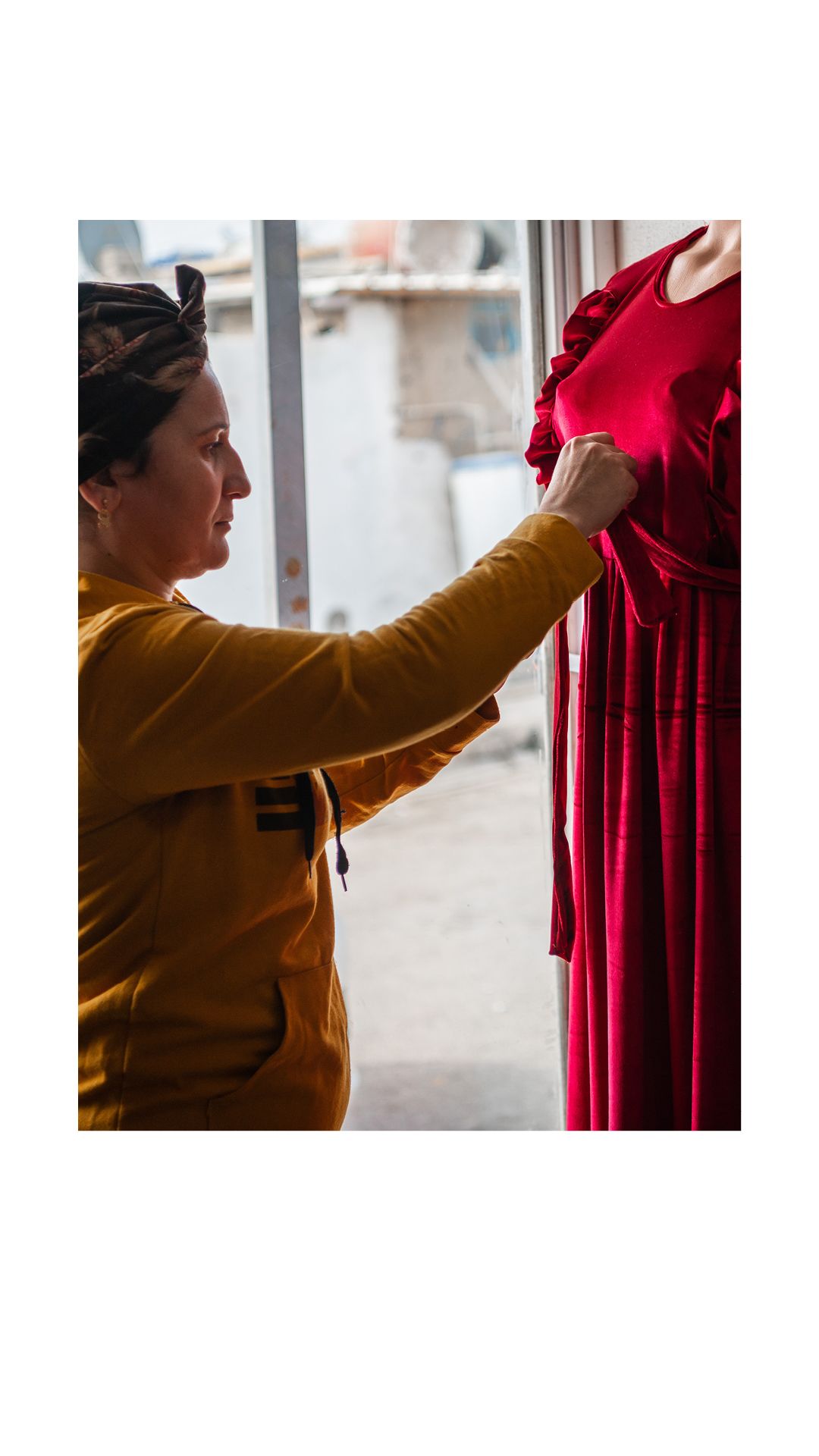 “I sew all kinds of dresses, both for home use and for parties. These days, I like to make dresses where the fabrics are layered. And because it’s autumn, my customers want heavy and dark ‘winter fabrics’. In the summer I work with lighter, brighter materials,” says Syrian-Kurdish dressmaker Gulistan, 33.