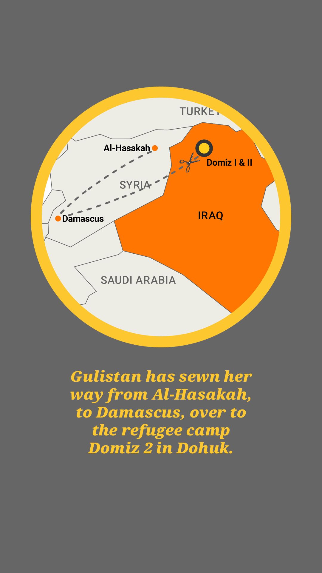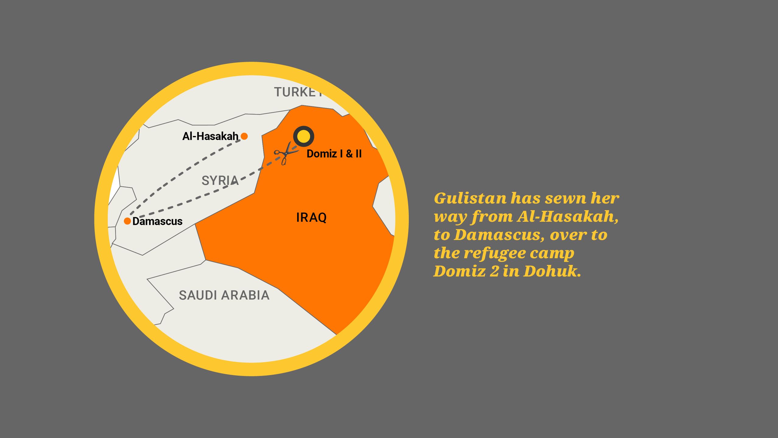 Gulistan’s sewing studio is located in Domiz 2 refugee camp. Her customers are Syrians who live here, or people who order tailor-made garments from Germany.